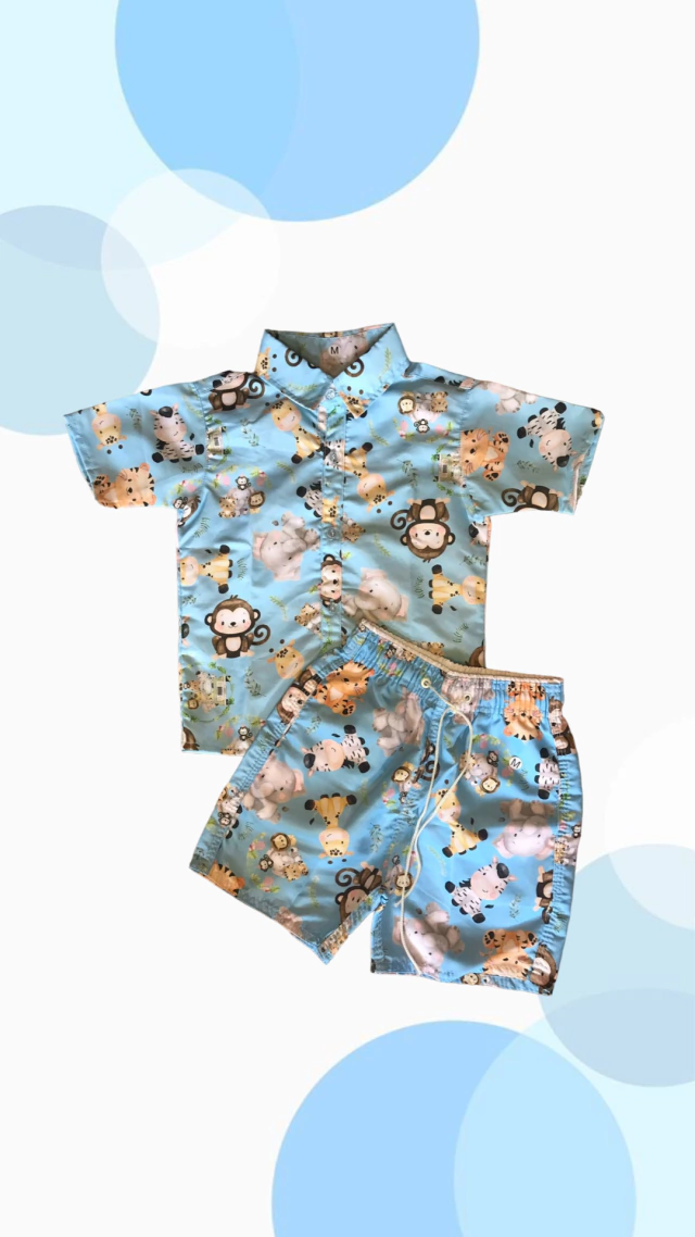 CONJUNTO MAURICINHO SAFARI AQUARELA AZUL